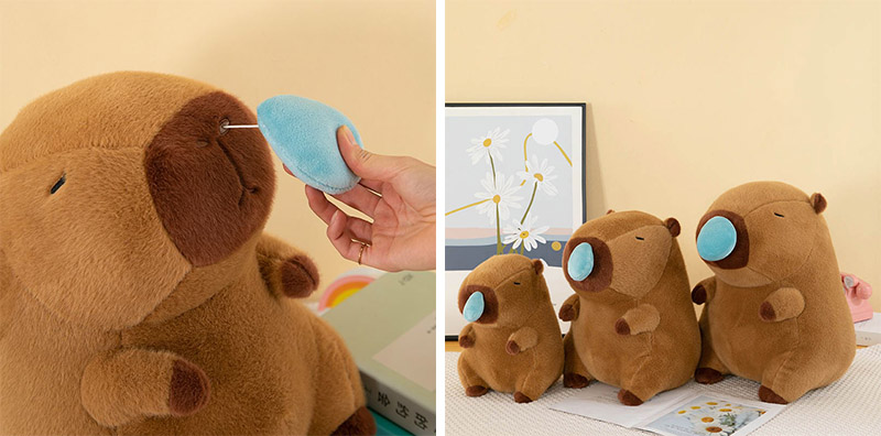 ของเล่นตุ๊กตา capybara snotty เหล่านี้แตกต่างจากของเล่นตุ๊กตาธรรมดา พวกเขามีกลไก "น้ำมูก" ที่เป็นเอกลักษณ์ น้ำมูกบนใบหน้าของมันทำจากผ้านุ่ม เมื่อคุณดึงมันมันจะยาวมาก และเมื่อคุณปล่อยมือของคุณน้ำมูกจะสร้างเอฟเฟกต์สั่นและกลับไปยังตำแหน่งเดิม LT สามารถเล่นได้สูงและเหมาะสำหรับเด็ก