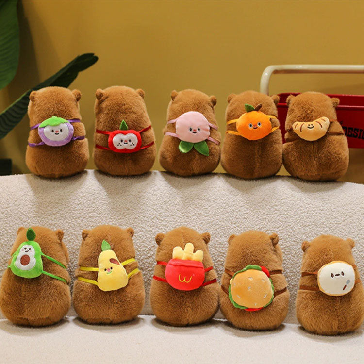 ตุ๊กตาตุ๊กตา Capybara น่ารักตัวนี้มีรูปลักษณ์ Capybara ตัวละครทั้งหมดในซีรีส์นี้เป็นรูปกระเป๋าเป้สะพายหลังและแต่ละ Capybara มีกระเป๋าเป้สะพายหลังที่แตกต่างกัน Capybaras บางคนถือแฮมเบอร์เกอร์ที่ด้านหลังของพวกเขาบางคนถือมะเขือยาวบางคนถือแอปเปิ้ลบางคนกำลังพกพามันฝรั่งทอดและยังมีลูกแพร์และส้ม มี capybaras ทุกชนิดและแต่ละคนน่ารักมาก กระเป๋าเป้สะพายหลังของพวกเขาสามารถถอดออกได้และมีทั้งหมด 10 รูปแบบที่แตกต่างกัน และกระเป๋าเป้สะพายหลังขนาดเล็กแต่ละตัวนั้นยอดเยี่ยมมาก