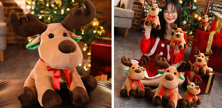 ของเล่นกวางเรนเดียร์มีสามขนาด: 25 ซม., 35 ซม. และ 45 ซม. สิ่งนี้ทำให้สามารถใช้งานได้จริงและตกแต่งอย่างมากทำให้สามารถเลือกได้ง่ายขึ้นอยู่กับความต้องการของคุณ ขนาดเล็กสามารถใช้ในการตกแต่งรถยนต์และต้นคริสต์มาส คนที่มีขนาดใหญ่กว่าสามารถวางไว้ที่ข้างเตียงของห้องบนโซฟาหรือชั้นวางหนังสือและยังสามารถมอบเป็นของขวัญคริสต์มาสให้เพื่อนได้